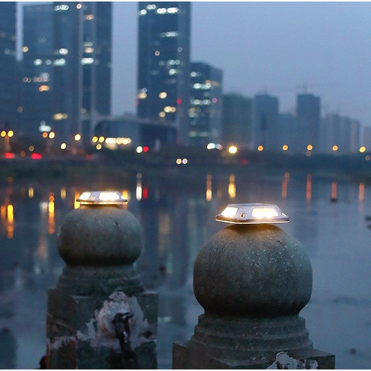 Set 4 Lampi Solare LED pentru Gradina, Practicpentrucasa, cu 8 LED-uri, Prindere de Perete sau impamantare, Alb Cald, IP65, 9 x 9 cm